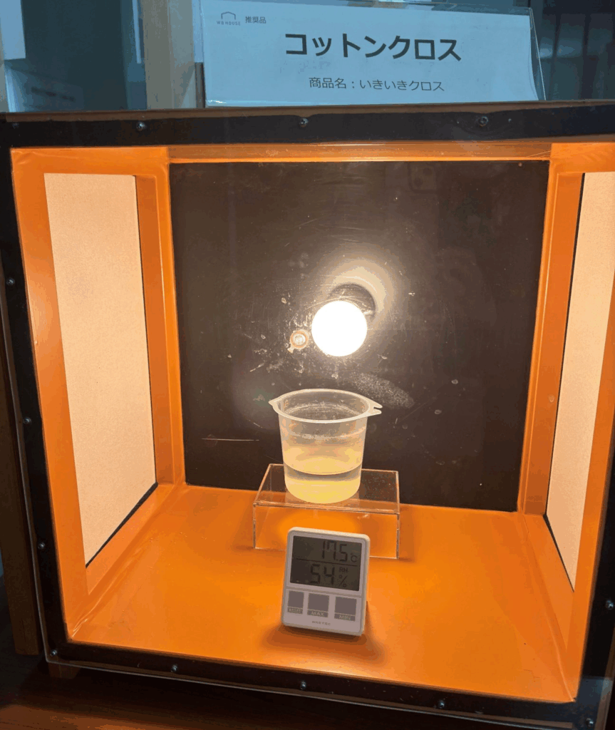 コットンクロスの実験展示(他の種類のクロスも実験展示されています)