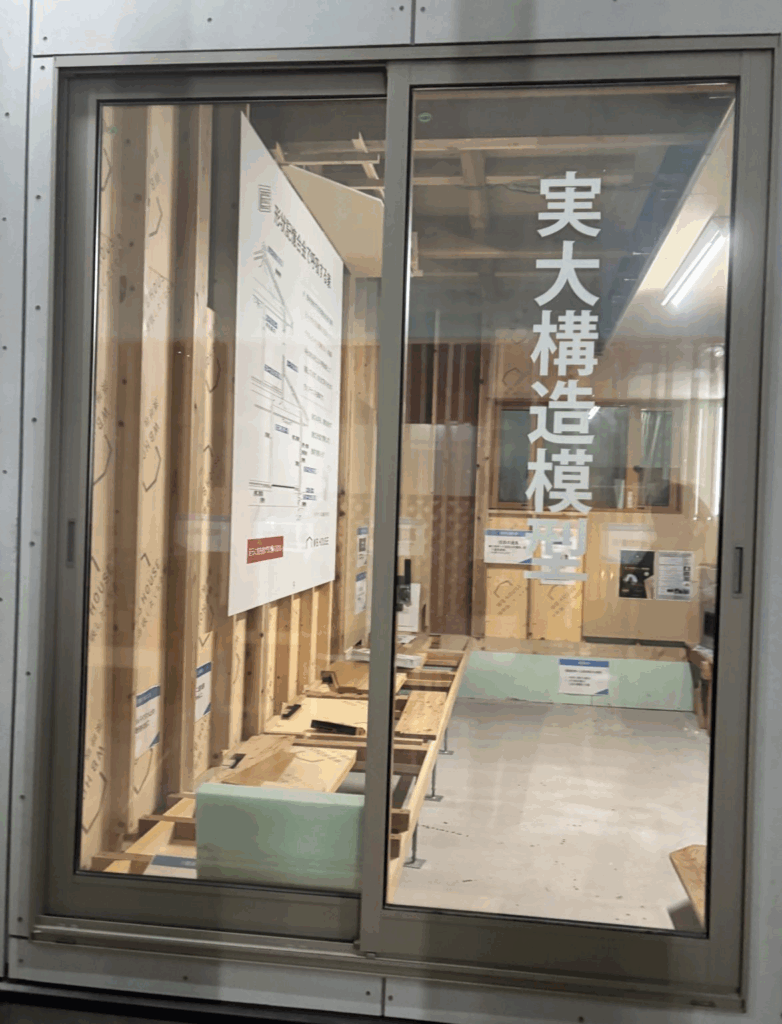 実物実験棟の見学終了後は、お客様をモデルハウス(宿泊体験棟)へご案内。